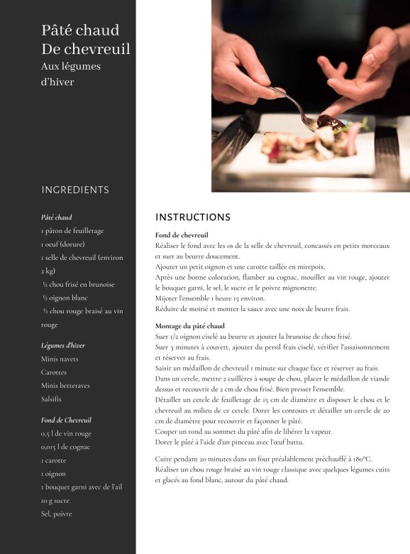 Pour les passionnés de cuisine souhaitant s’essayer à la recette du pâté chaud de chevreuil aux légumes d’hiver, le chef recommande de porter une attention particulière aux temps de cuisson. Cette précision permettra de préserver la tendreté de la viande et d’obtenir un feuilletage parfaitement croustillant, garantissant ainsi le succès de la recette.