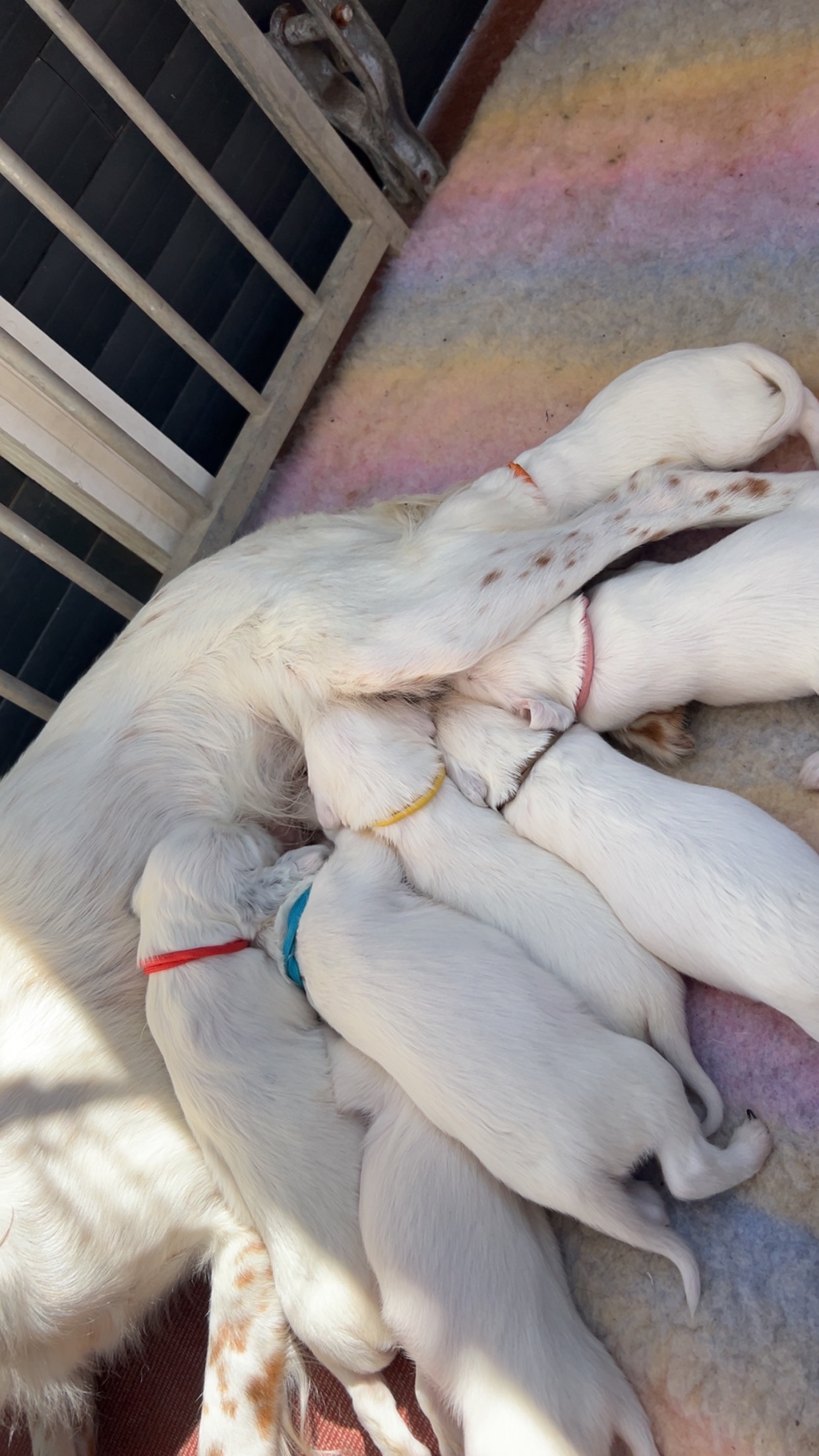 Chiot Setter Anglais Nés le 06.08 Reste 4 femelles et 2 mâles Chiot inscrit au LOF LOF-2025023705-2025-3 Maman Lemon : 250268780389870 Papa tricolore