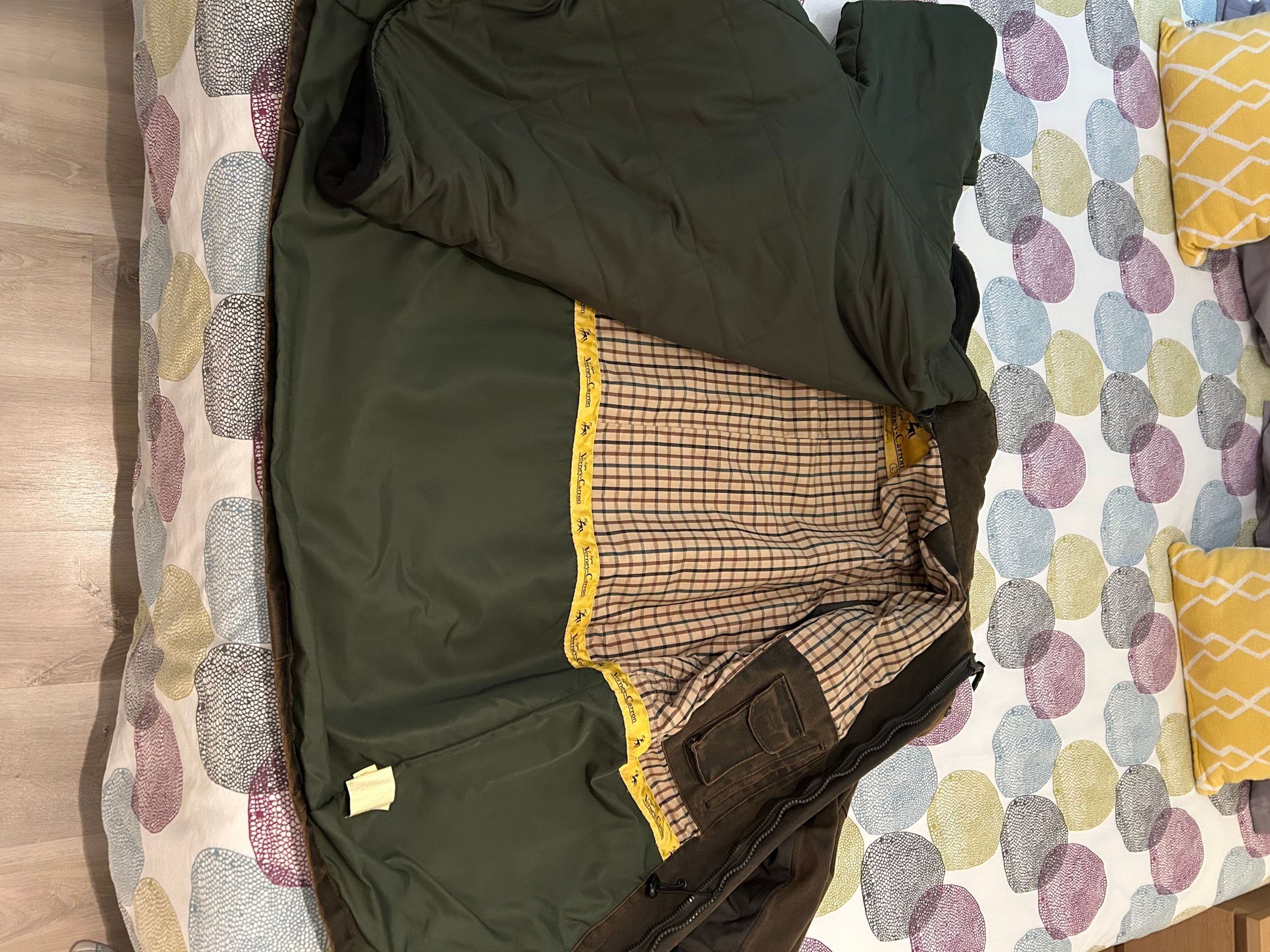 Veste de Chasse coton Huilé VERNEY CARON Etat neuf 3 Pièces ( avec gilet polaire amovible + chasuble orange fluo VALEUR NEUVE 150 Euros