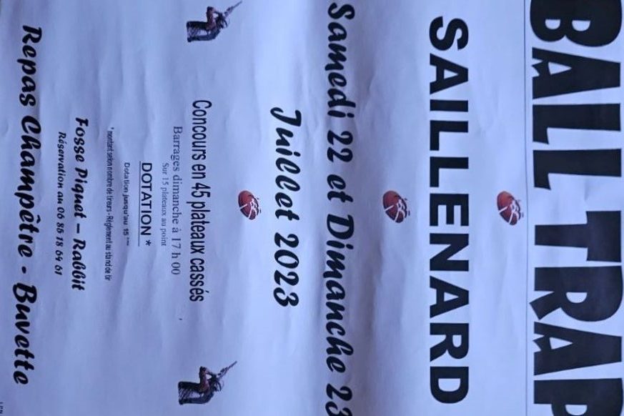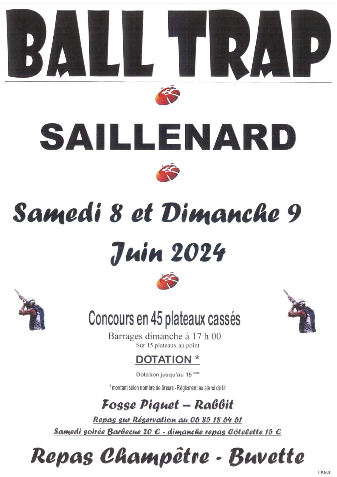 BALL TRAP SAILLENARD ( à coté de Louhans ) 22 et 23 juillet 2023 Barrages concours dimanche 23 sur 15 plateaux Pour s'amuser : fosse piquet , Rabbit Buffet-buvette-repas à toute heure