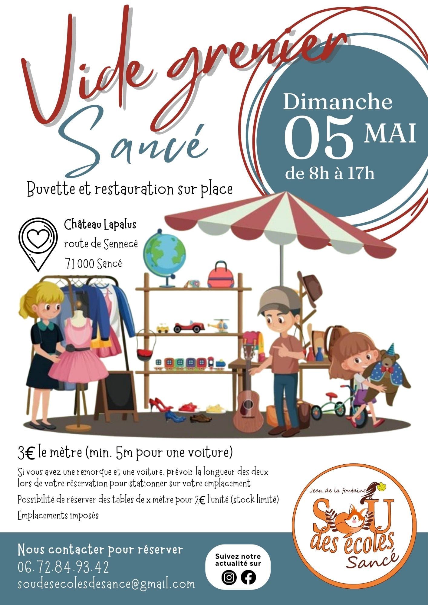 Le sou des écoles organise don traditionnel vide grenier le 05 mai 2024 au château Lapalus à SANCE.