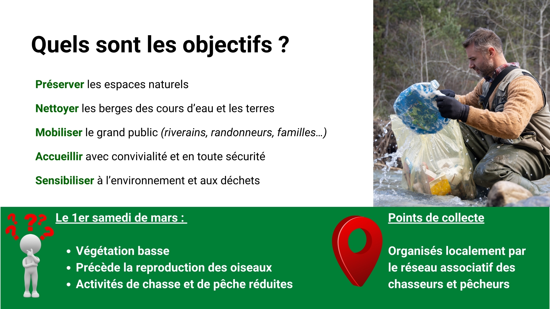 🏳️ 2021 : Mise en place de l’évènement national qui devient J’aime la nature propre et est coordonné par la Fédération Nationale des Chasseurs.