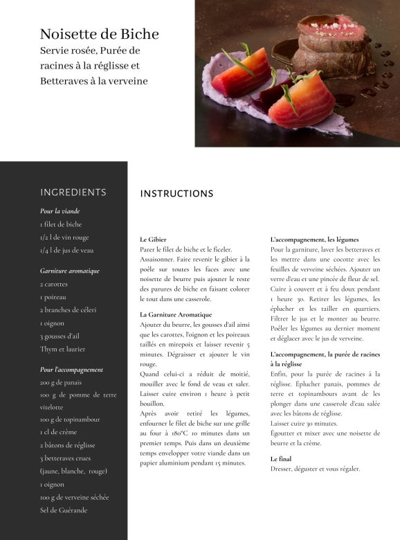 Comment lui est venue l’idée de sa magnifique (et délicieuse) recette de Noisette de Biche, Purée de racines à la réglisse et Betteraves à la verveine qu’il a proposé pour notre livre de cuisine ?