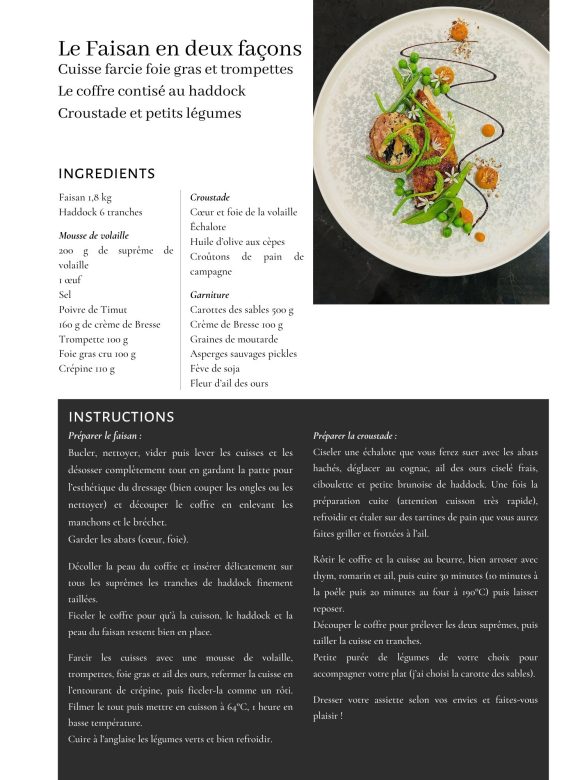 Et justement la recette du livre le croustillant de faisan. Y a-t-il une histoire particulière derrière cette création ?