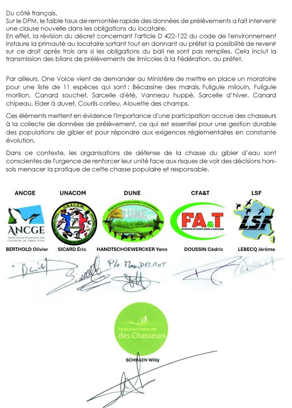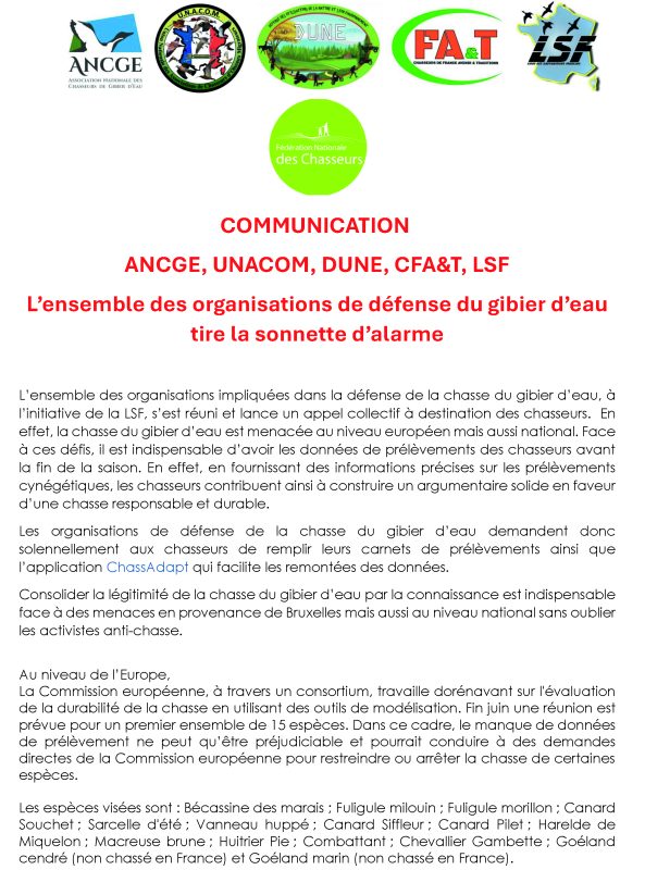 Voici un courrier né d’une initiative commune des associations de défense du gibier d’eau pour sensibiliser l’ensemble des chasseurs à l’importance cruciale de la collecte de données de prélèvements.