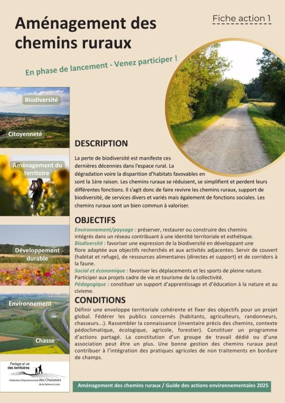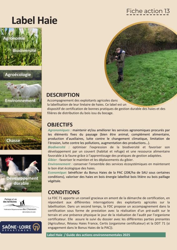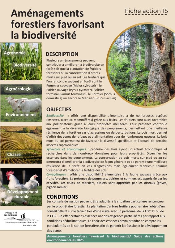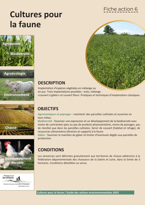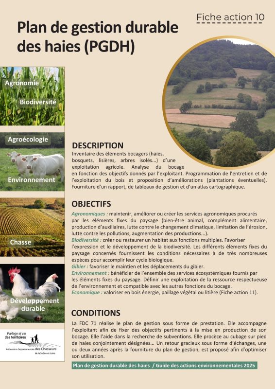 En cohérence avec son schéma départemental de gestion cynégétique, la FDC 71 place le développement durable au cœur de ses missions, en proposant des solutions adaptées aux réalités de terrain.