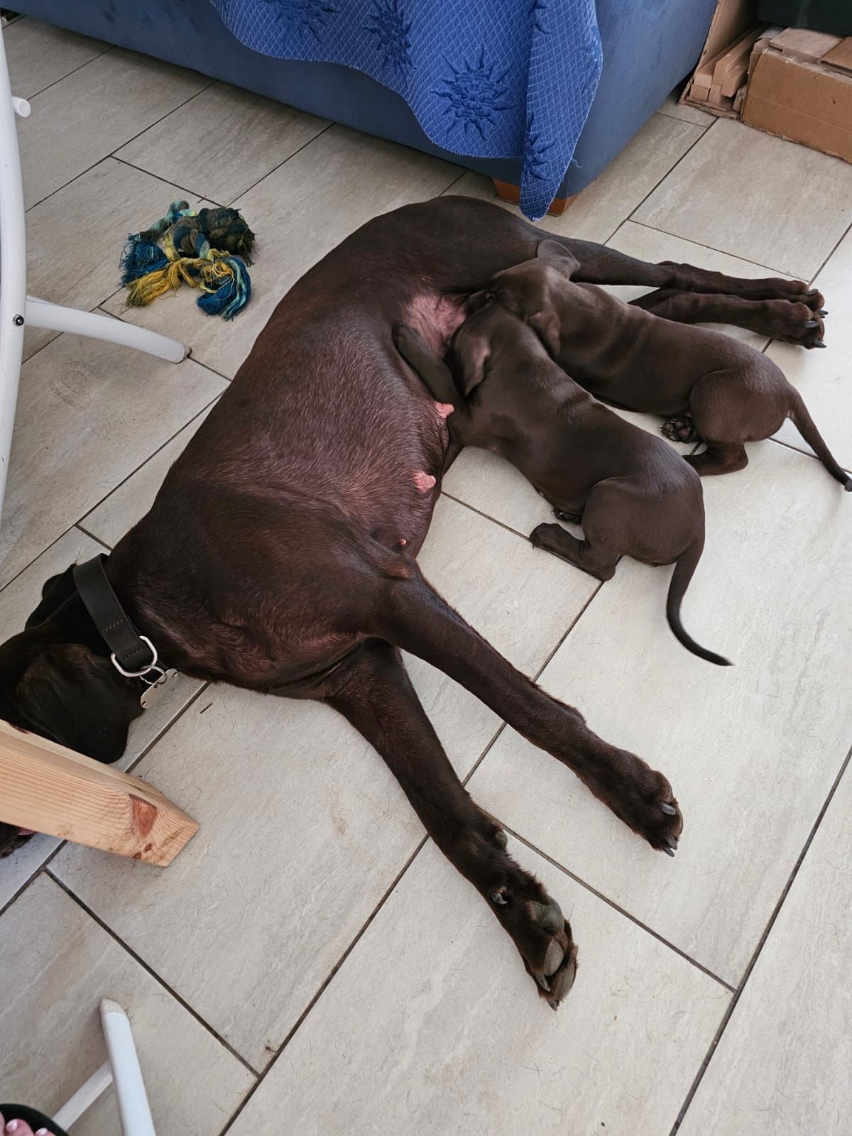 2 bébés males Braque Allemands nés mi mai attendent un foyer accueillant pour câlins au coin du feu et chasse si possible comme papa et maman ils seront très performants à n'en pas douter, d'ailleurs sans être LOF ils sont de bonne race et très sympa en famille et avec les enfants. Ils habitent dans le département 21 et seront disponibles à compter du 14/07.