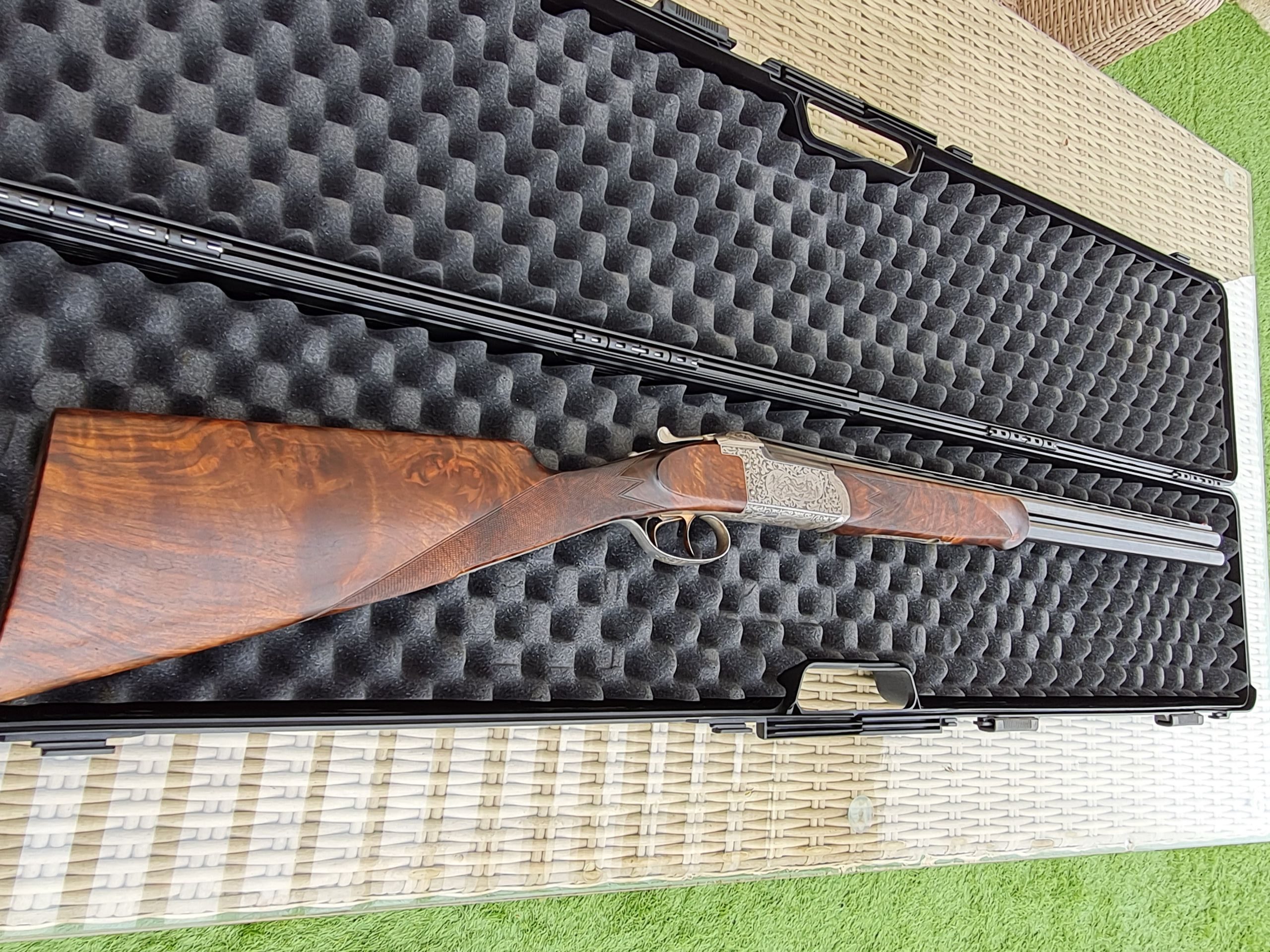 Vds superposé Damon Petrik cal 12 , très belles gravures réalisées par M.O.F , crosse anglaise. Autres photos sur demande.