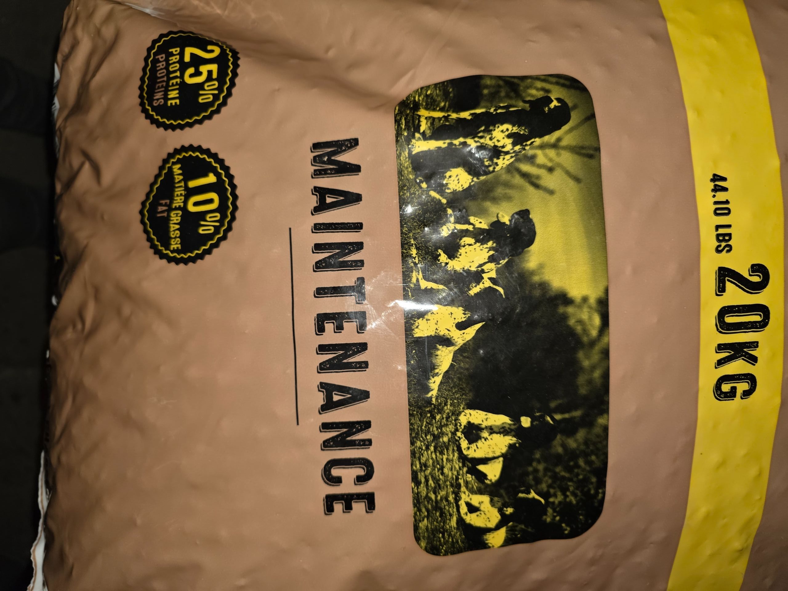 Disponible toute l'année croquettes spécial Chasse 32/14, prix à la palette (36 sacs), enlèvement sur place. Croquettes 25/10 disponible également, prix 22 € à la palette (36 sacs) D'autres aliments type basse-cour, chiens, chats, chevaux, oiselleries, poissons, ovins, caprins, porc, gibiers ect... sont disponible, tarifs et renseignements sur demande.