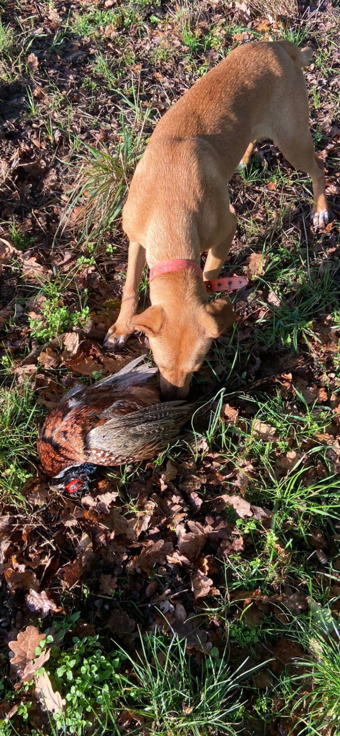 Vend chienne de chasse croisé pointer Fauve née le 14/03/2022 chasse le gros et petit gibier très gentille avec les enfants sociables .