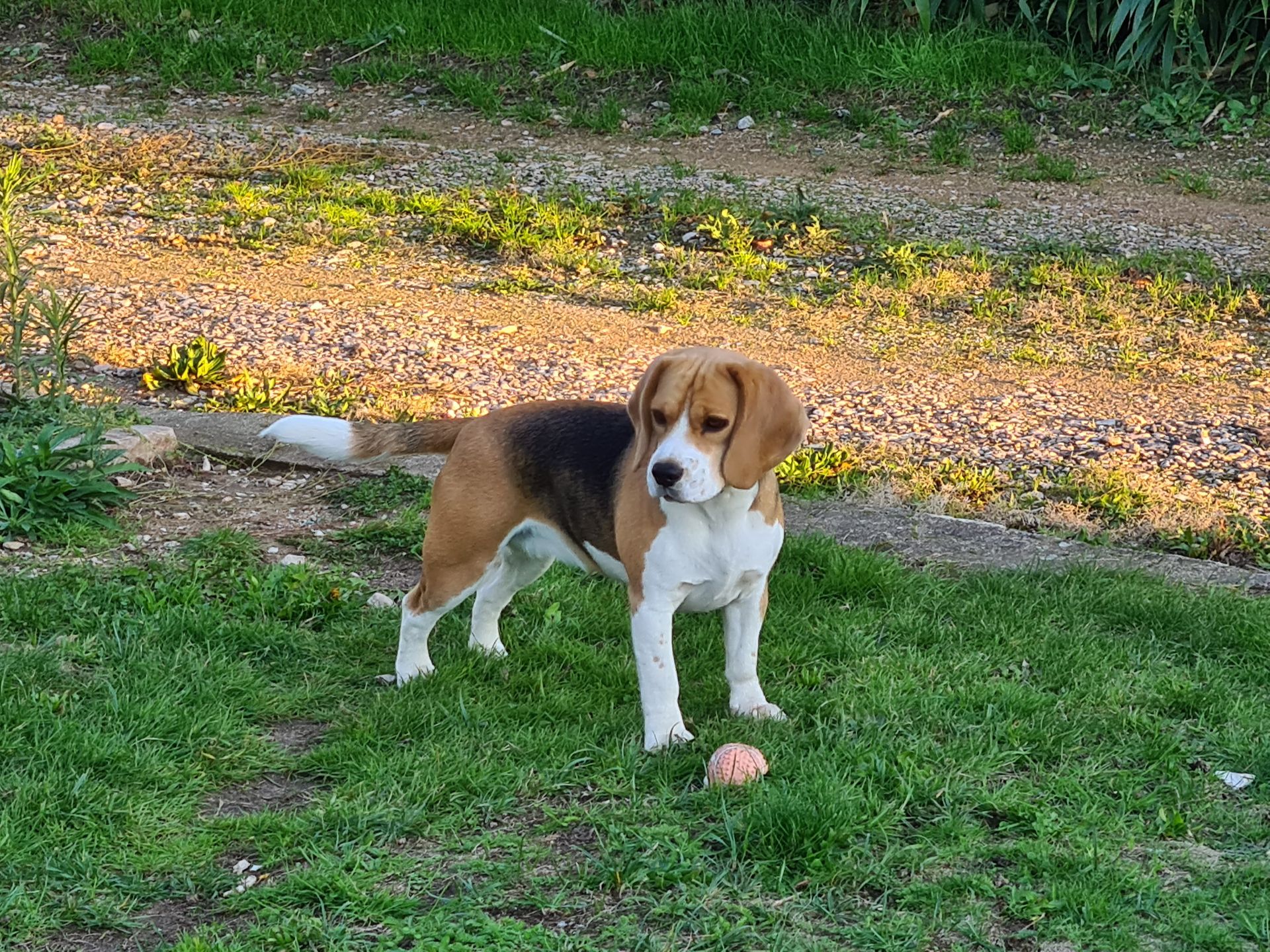 Reste 1 chiot mâle tricolore disponible sur une portée de 7 nés le 23 mars . Les 2 parents sont LOF confirmés. La mère a été élue meilleure jeune de la catégorie beagle lors de sa confirmation. Extra chasse : chevreuil, sanglier, renard, lièvre. Le chiot partira vacciné et pucé. Dernière photo : la mère.