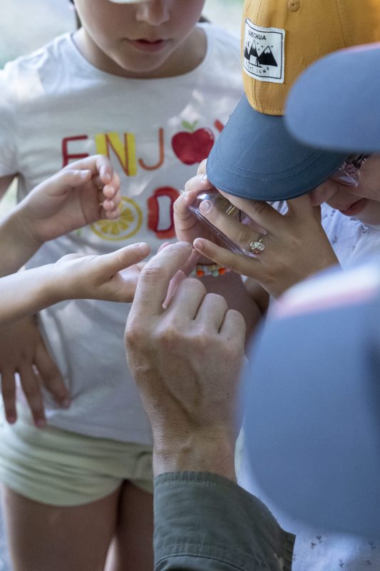 L’animation, limitée à 10 enfants par session pour des raisons d’encadrement et de fluidité, a donc été réalisée en deux temps. Pendant ce temps, l’autre groupe restait à l’ombre, profitant d’ateliers et de jeux autour de la chasse et de la nature.